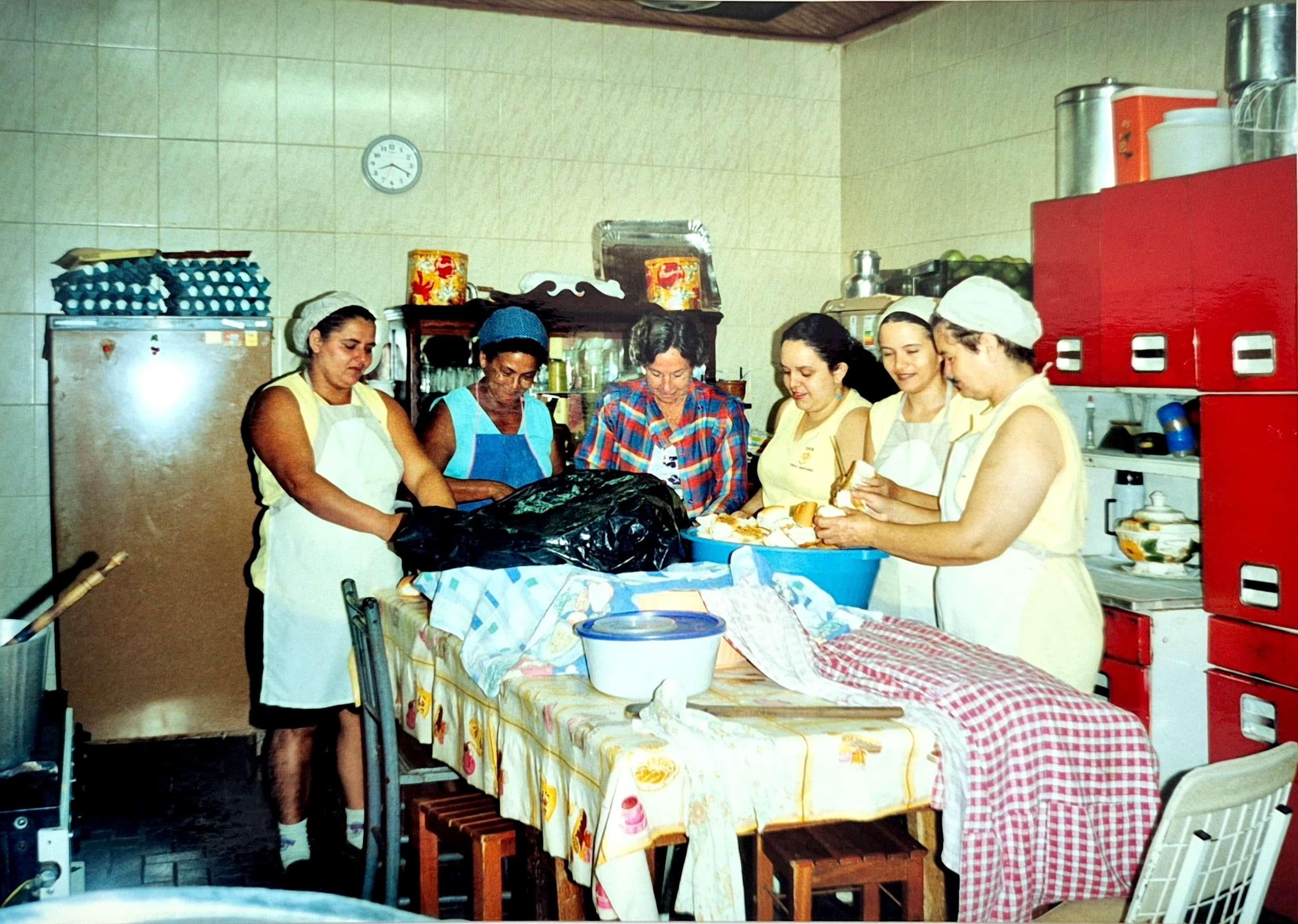 cursos, oficinas, marmitas, roupas e móveis. Uma equipe de voluntários realiza visitas semanais a