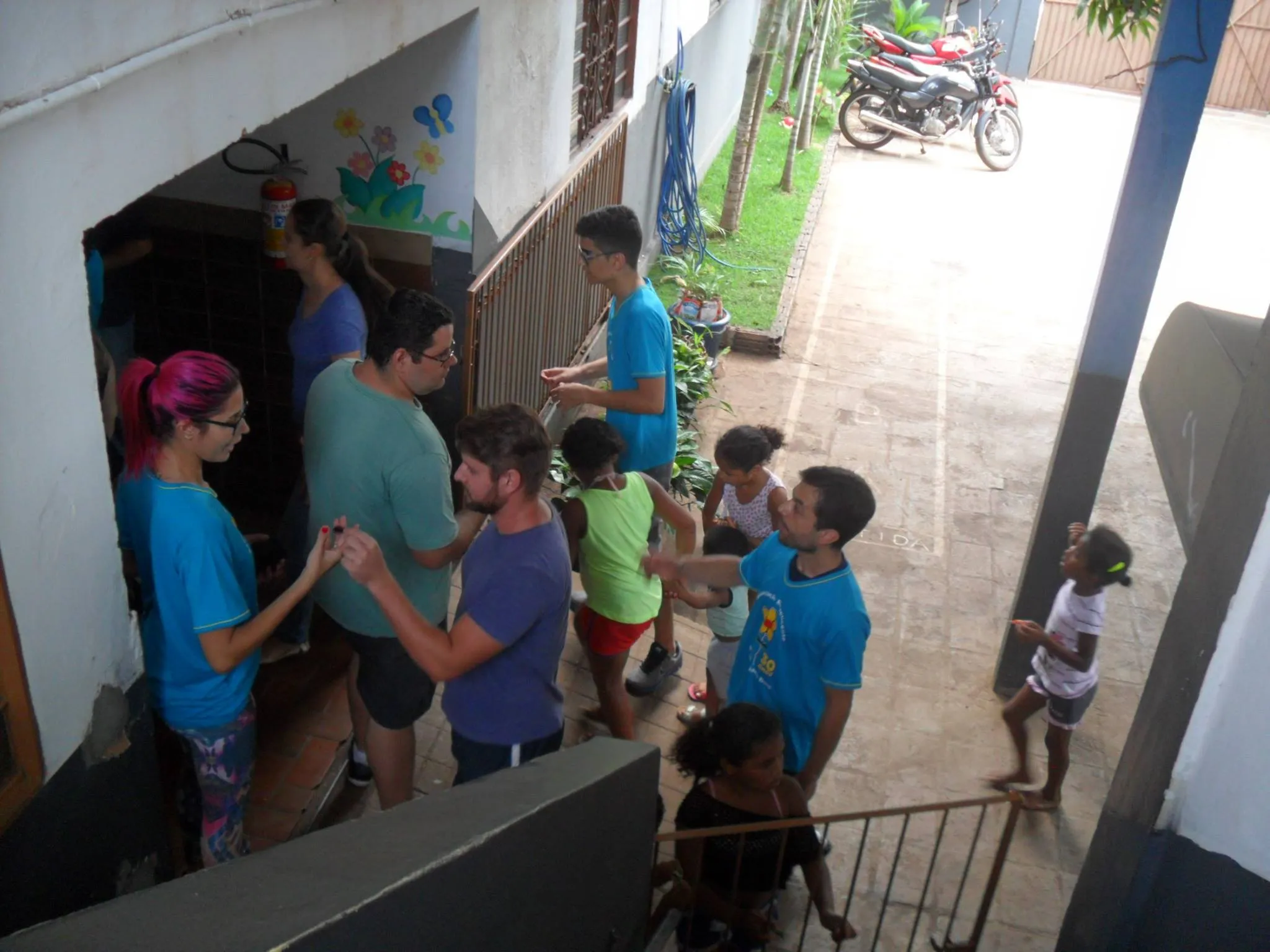 cursos, oficinas, marmitas, roupas e móveis. Uma equipe de voluntários realiza visitas semanais a