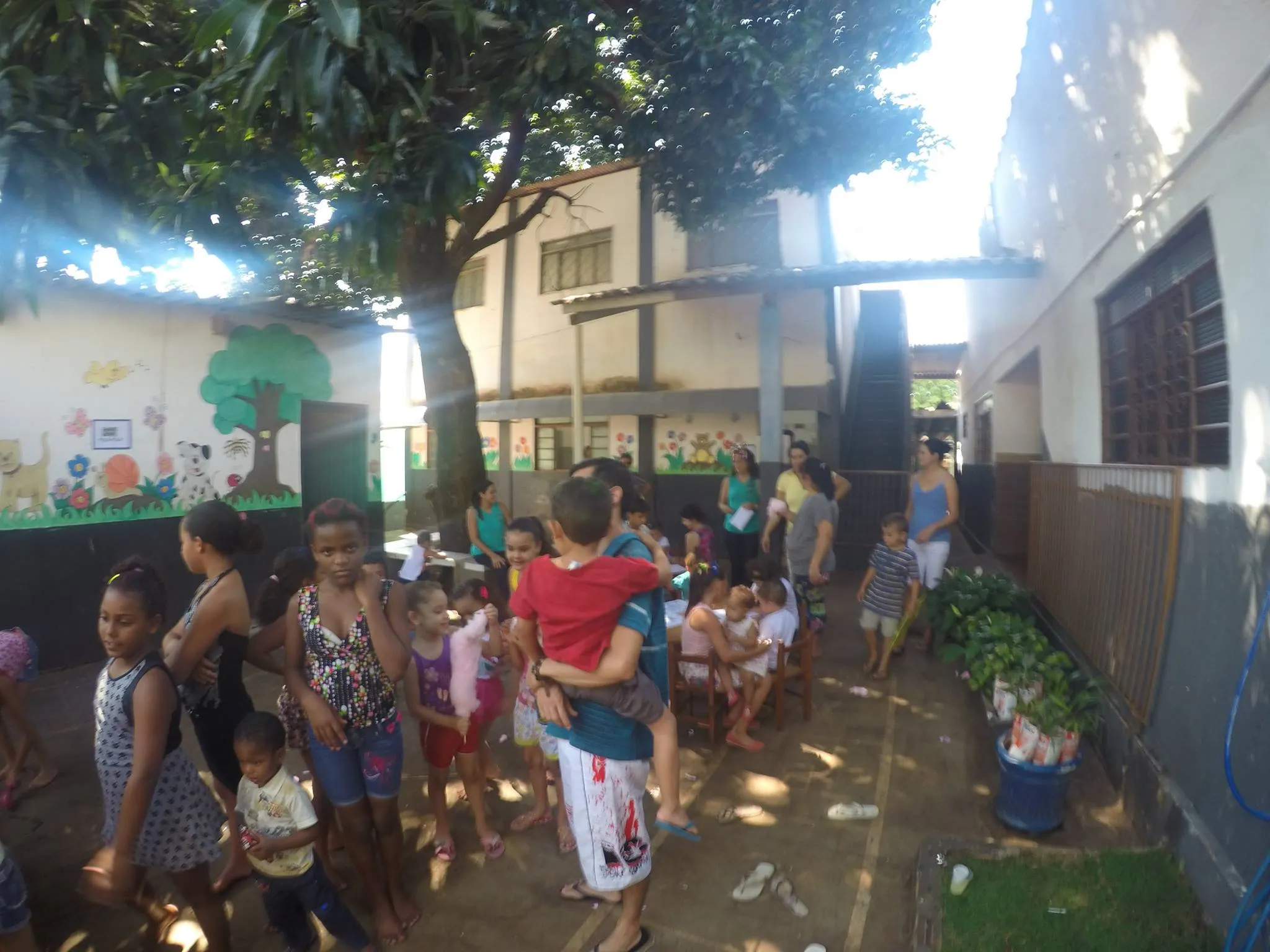 atividades psicossociais. São servidas refeições diárias a aproximadamente 130 crianças e