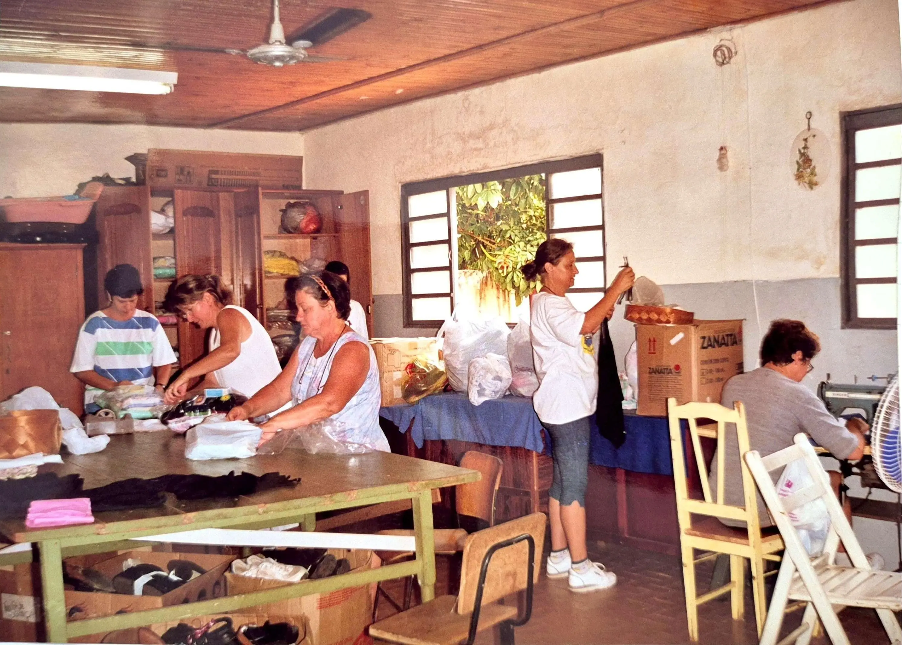 cursos, oficinas, marmitas, roupas e móveis. Uma equipe de voluntários realiza visitas semanais a