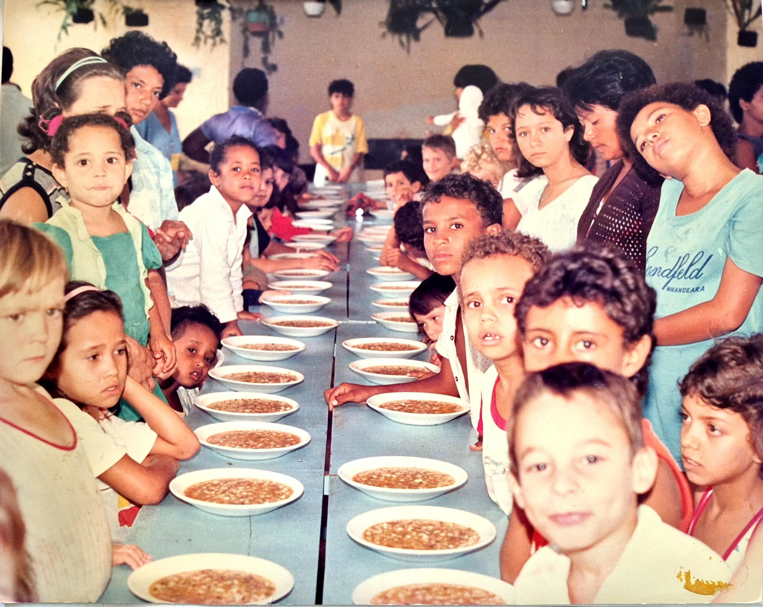 atividades psicossociais. São servidas refeições diárias a aproximadamente 130 crianças e